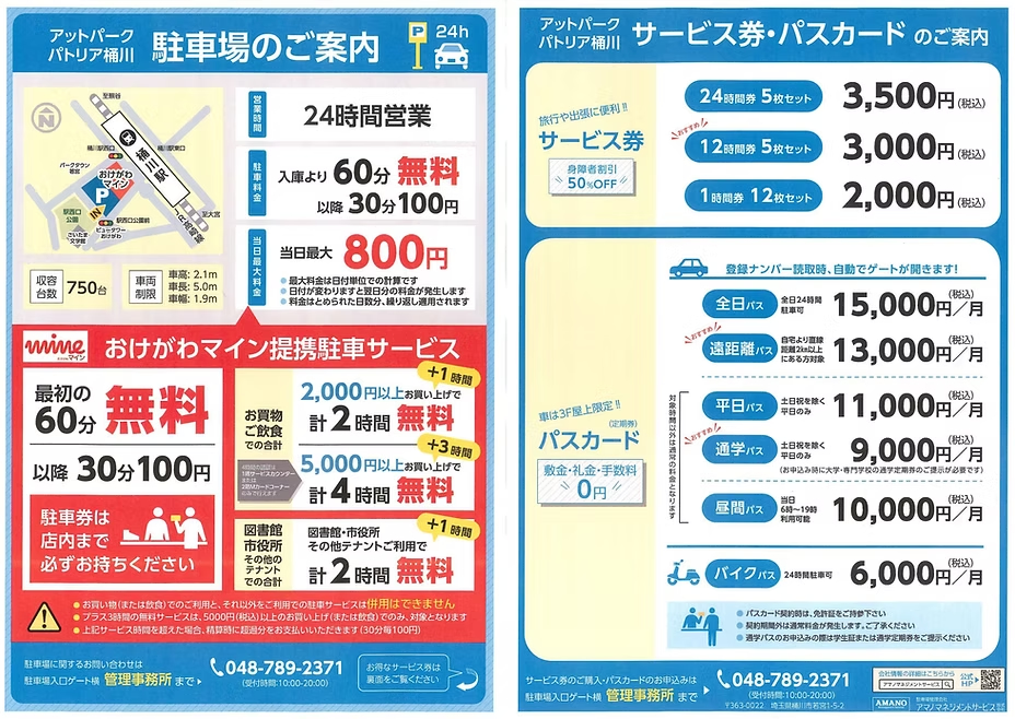 | 図書館・市役所・その他テナントご利用 | +1時間無料 |